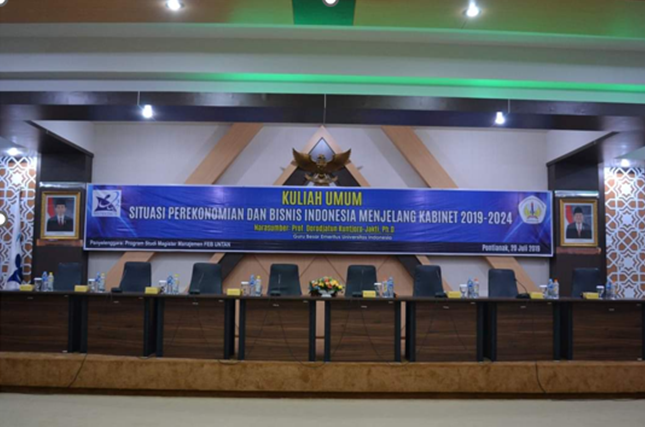 Tema Kuliah Umum Tahun akademik 2019/2020 oleh Prof. Emeritus Dorodjatun Kuntjoro-Jakti, PhD pada Tanggal 20 Juli 2019 bertempat di Gedung Rektorat Universitas Tanjungpura Pontianak dengan Tema “Situasi Perekonomian dan Bisnis Indonesia Menjelang Kabinet 2019 – 2024.